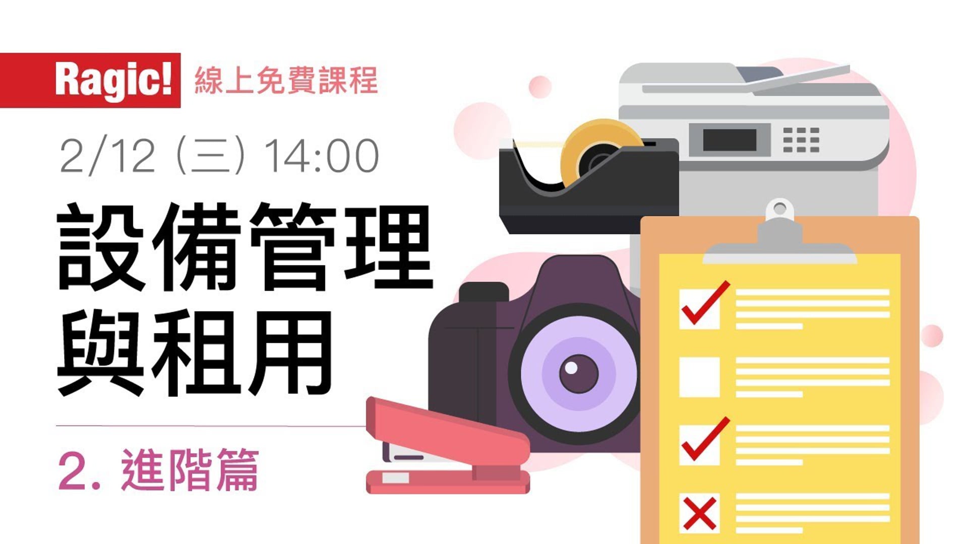 本次課程以設備上常用的「設備管理及維修」為範例,延伸上次「基礎篇」的課程內容,講解怎麼進一步利用 Ragic 的各種功能來達成進階設計,讓設備管理更加自動化、智慧化。
