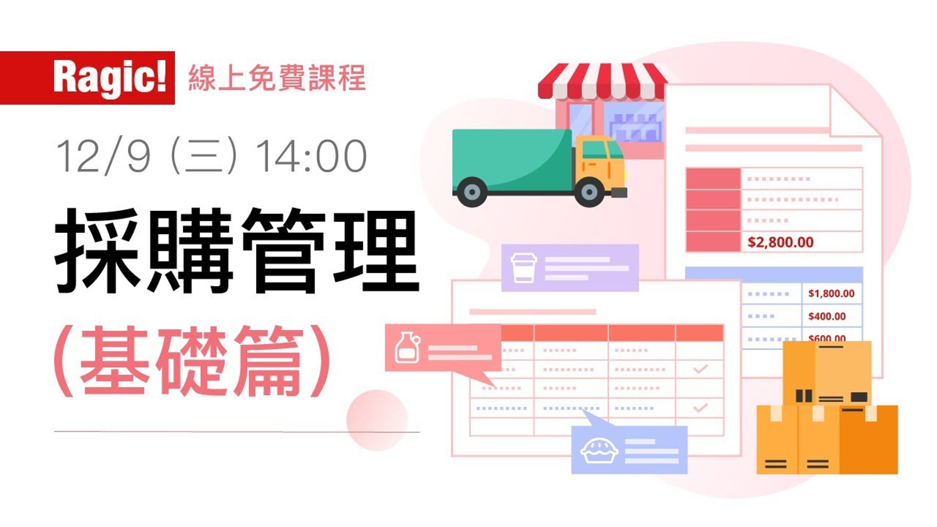 本次課程以採購管理為範例,示範設計常用的「採購商品」、「供應商」及「請購單」與「採購單」,講解怎麼輕鬆建立管理的採購商品及供應商資訊及填寫建立請購單資訊,並轉成採購單,讓採購管理更容易。