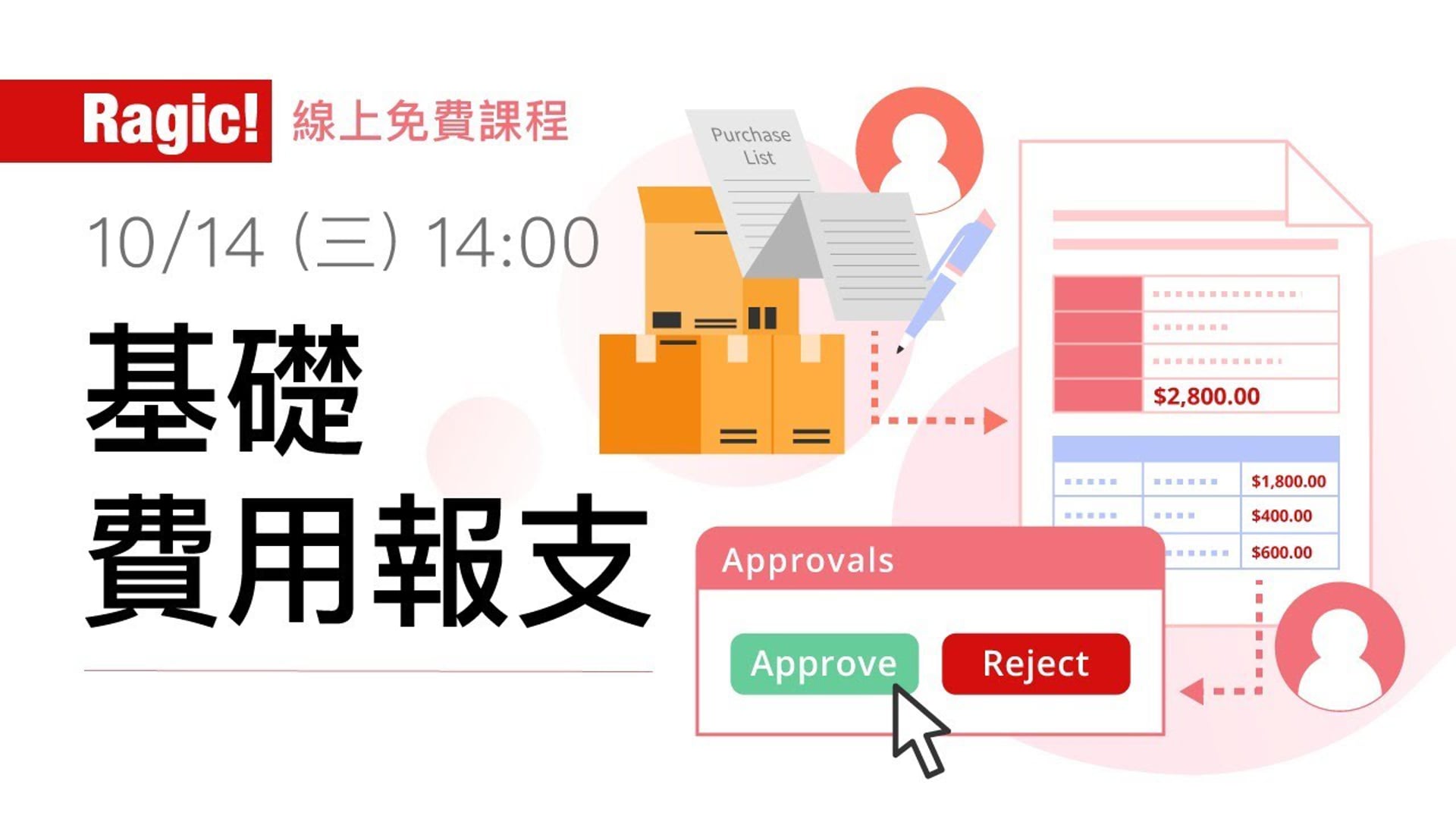 本次課程以行政上常用的「費用報支」為範例,講解怎麼建立有費用細節、員工資訊、報支細項等相關欄位的費用報支表單。此外也將講解如何製作簽核流程讓相關人員可以批准這筆費用。
